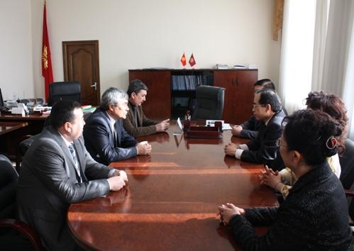 в Кыргызской Республике господина Ван Кайвень и ректора КНУ им. Ж. Баласагына, профессора