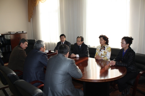 Перед началом концерта делегация из Китая встретилась с ректором КНУ им. Ж. Баласагына, профессором А.А.Акуновым