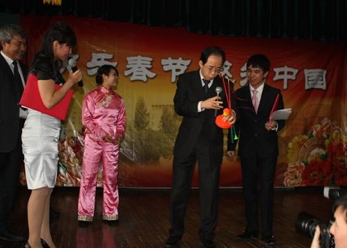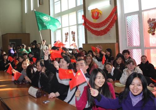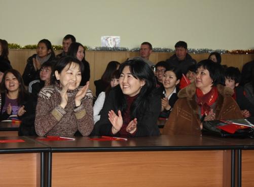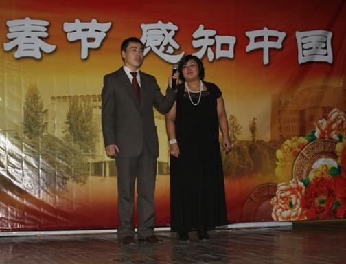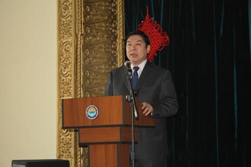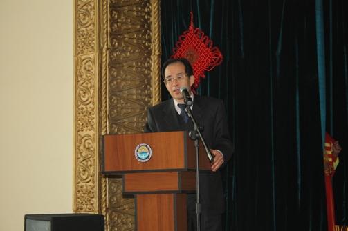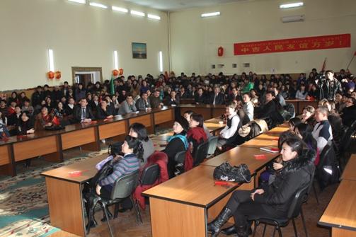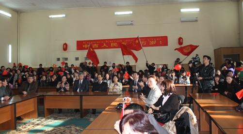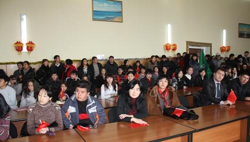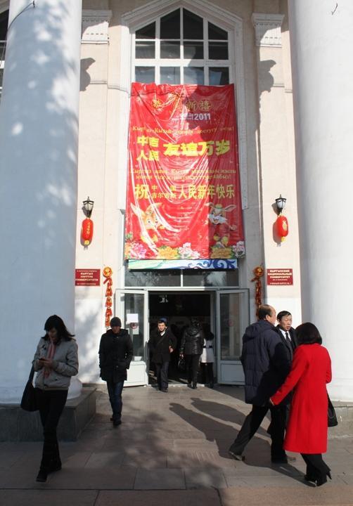 Чрезвычайный и Полномочный Посол Китайской Народной Республики в Кыргызской Республике господин Ван Кайвень поздравил студентов и преподавателей с наступившим 2011 годом. Об особенностях празднования китайского Нового года он сказал так: "Мы, китайцы, всегда куда-то спешим, торопимся, но у нас исключения иногда бывают. Это когда отмечаем Новый год. Вы уже здесь отметили Новый год по обычному календарю, а мы будем отмечать китайский новый год 3 февраля. Этот год будет годом Кролика. Я думаю, что этот год будет очень успешным. Потому что Заяц быстро бежит. Это символизирует то, что и ваша страна, и наша страна будет развиваться очень высокими темпами". В заключение он пожелал всем присутствующим в зале больших успехов в учебе и работе