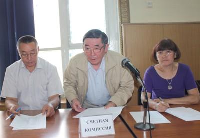 Чогулуштун катышуучулары 3 адамдан турган Эсептөө комиссиясын шайлашып, анын курамына физиканы окутуунун технологиясы кафедрасынын башчысы Эсенбек Мамбетакунов (төрага), физика-техникалык процесстерди моделдештирүү кафедрасынын башчысы Гүльмира Бейшекеева жана электроника жана микроэлектроника кафедрасынын ага окутуучусу Нарбай Таштанбаев киришти.