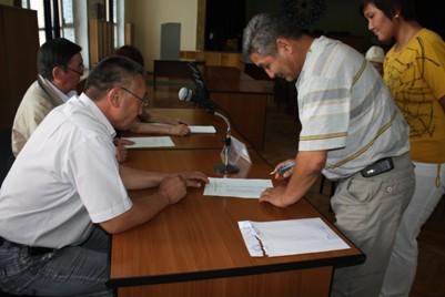 КУУнун декандарын шайлоону өткөрүү боюнча уюштуруу комитетинин мүчөлөрү (солдон оңго):