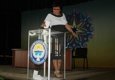 КУУнун декандарын шайлоону өткөрүү боюнча уюштуруу комитетинин төрайымы, КУУнун академиялык иштер боюнча проректору Роза Сарымзакова чогулуштун башында шайлоону өткөрүүнүн тартиби тууралуу кыскача айтып берди.