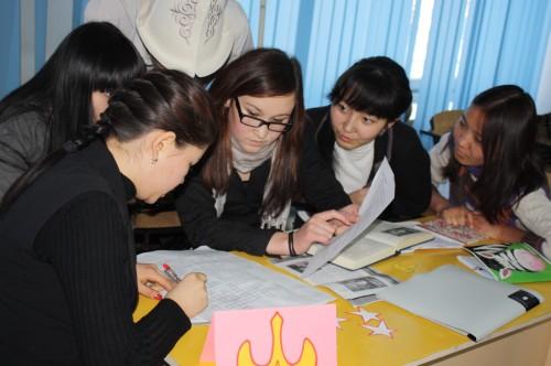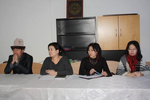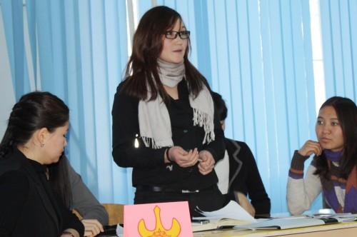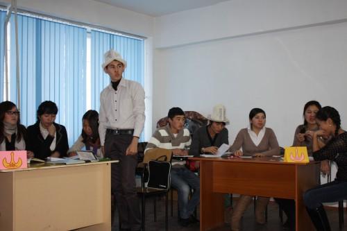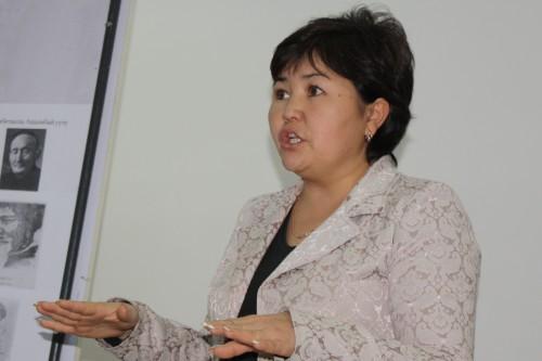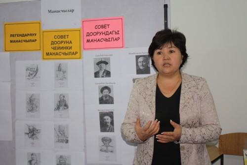 Жаш манасчылар Саякбай Каралаевдин өмүрү, чыгармачылыгына токтолуу менен, манасчылык өнөр, манасчылардын типтери, алардын жашаган доорлору боюнча бөлүнүшү, манасчылардын кыргыз турмушундагы ээлеген орду, аткарган кызматы ж.б. тууралуу студенттерге кенири айтып беришти.