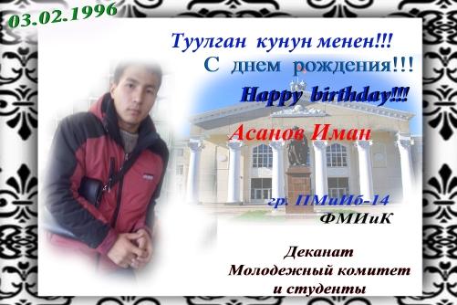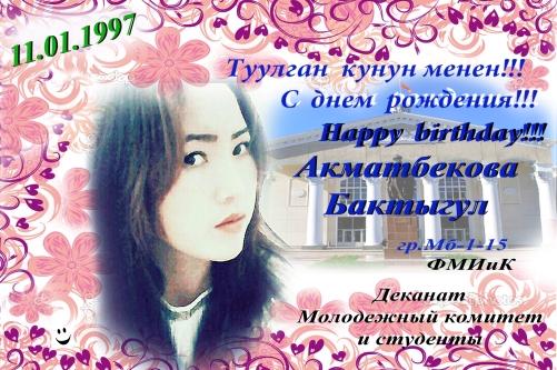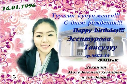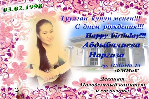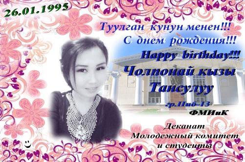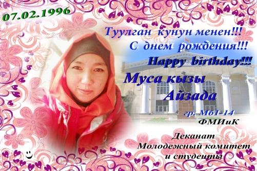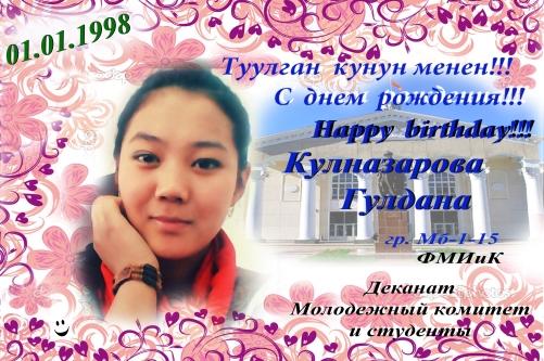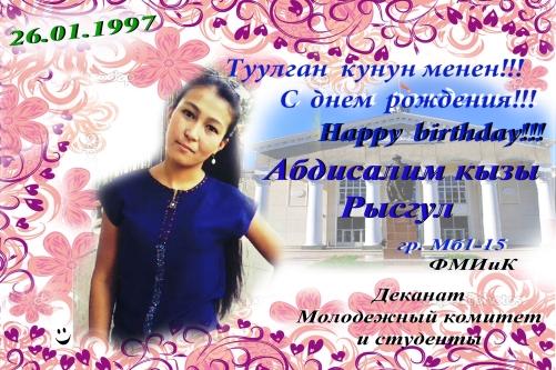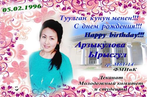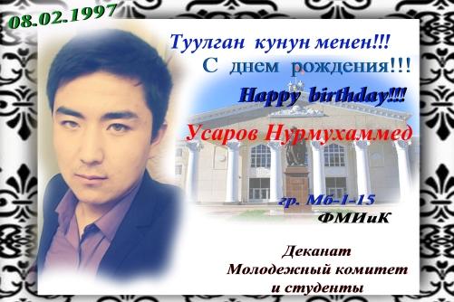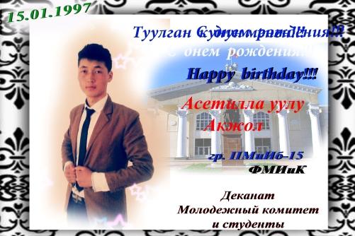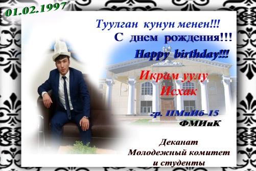 Математика, информатика жана кибернетика факультетинде бул багытта факультеттин Студенттик кеңешинин төрагасы Амангелди уулу Нурсултан тарабынан алгылыктуу иштер жүргүзүлүүдө. Мисалы, ар бир туулган күнү болгон студентке ошол күнү «Куттуктоо баракчасы» берилет. Туулган күндөрдүн даталарын тактоо, "Куттуктоо баракчаларын" чыгаруу - төраганын орун басары Бектурова Жылдызга жана аталган кеңештин мүчөлөрү Качикеева Айжамалга жана Туратбек кызы Асылгүлгө жүктөлгөн.