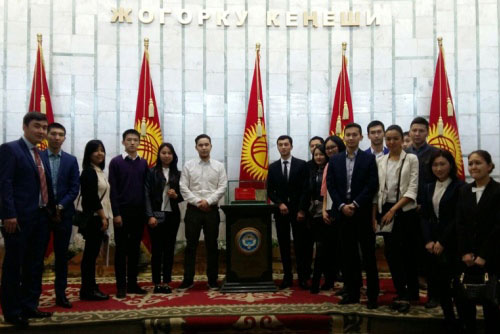 2016-жылдын 25-февралында юридикалык факультеттин 2-курс студенттери Жогорку Кеӊешке экскурсияга барышты. Аларды ЖК төрагасы Асылбек Жээнбеков кабыл алып, окууларына ийгиликтерди каалады жана окууну аяктаган соң мамлекеттик кызматкерлердин катарын толуктоого чакырды.