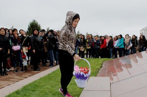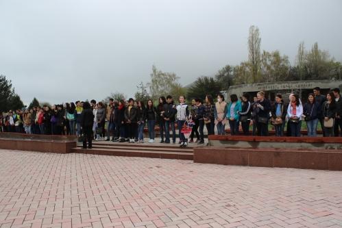 Студенттер адегенде заманыбыздын залкар жазуучусу Чыңгыз Айтматовдун сөөгү коюлган жерге барышып, куран окуп, гүл коюшту. Аандан соң, 7-апрелде каза болгон баатырлардын арбагына багыштап куран түшүрүлдү.