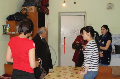 Студенттердин жатаканадагы турмушу менен факультетти деканы Айна Дуйшекеева, окуу иштери боюнча декандын орун басары Татына Токторбаева, кафедра башчылары Бегалы Тагаев (теле-радиожурналистика), Милан Мырзагулов (басма сөз), о.э. окутуучулар Нурлангүл Тилекеева жана Айбек Түмөнбаев таанышты.
