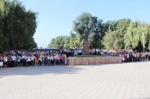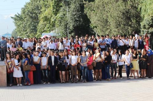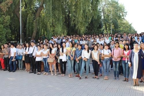 2014-жылдын 1-сентябрында башкы имараттын алдындагы аянтчада жаңы окуу жылынын башталышына арналган салтанаттуу жыйын болуп өттү. Жаштар комитети тарабынан даярдалган бул иш-чараны журналистика факультетинин 3-курсунун студенти Таттыбүбү Садырбекова жана Педагогикалык кадрларды максаттуу даярдоо институтунун 3-курсунун студенти Каныбек уулу Бекзат алып барышты.