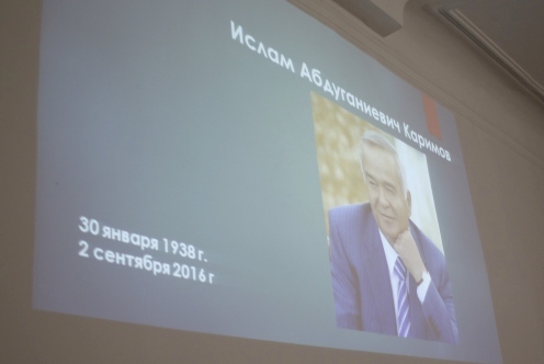 С приветственным словом к участникам мероприятия обратился ректор КНУ Канат Садыков. Он отметил, что Ислам Каримов, руководивший Узбекистаном в течение многих лет, являлся идеологом «узбекской модели» развития экономики и государственности, Провозглашённые им принципы развития экономики сыграли важную роль в успешном проведении экономических и демократических преобразований, позволили Узбекистану поэтапно, без существенных потрясений, перейти к рыночной экономике, создать прочный фундамент национальной безопасности и суверенитета. Под руководством И.Каримова Узбекистан, одним из первых среди стран СНГ, смог выйти из трансформационного спада и достичь высоких темпов роста промышленного производства.