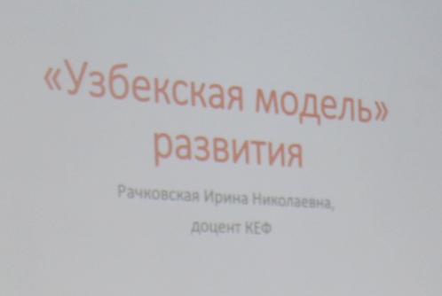 После того, как студенты кыргызско-европейского факультета вкратце рассказали о биографии Ислама Каримова, доцент Ирина Рачковская выступила с докладом «Узбекская модель развития»; доктор политических наук, экс-министр иностранных дел Кыргызстана (2005-2007) Аликбек Джекшенкулов рассказал об истории политико-дипломатического сотрудничества между КР и РУз; а старший преподаватель КЕФ Анжела Исламова - о туризме в рамках сотрудничества.