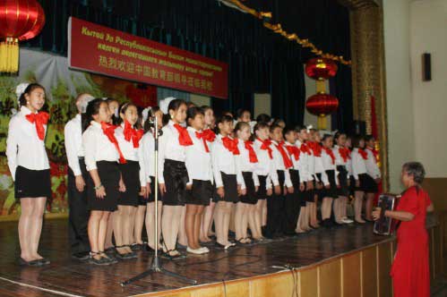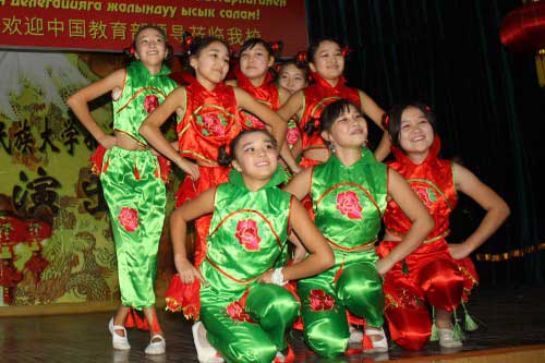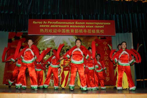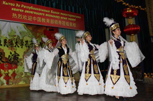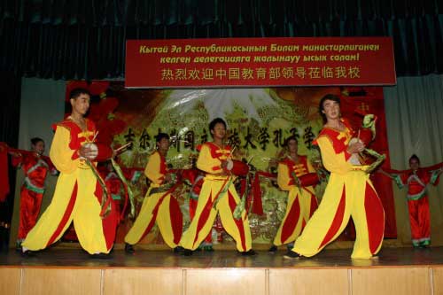 После завершения официальной части в Институте Конфуция, участники встречи направились в большой актовый зал главного корпуса КНУ, где состоялся концерт, подготовленный талантливыми студентами Кыргызско-Китайского института и Института Конфуция при КНУ.