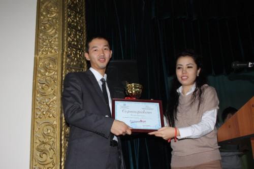 Решением жюри, членами которого стали представители Государственной регистрационной службы при правительстве КР, Национального института стратегических исследований, Министерства молодежи, труда и занятости, а также бизнес структур, 1-ое место завоевала команда Академии государственного управления при Президенте Кыргызской Республики, 2-ое место - КТУ «Манас» и 3-е место - команда Института интеграции международных образовательных программ КНУ.
