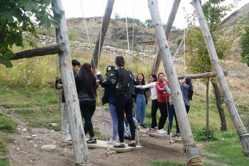 После этого, студенты поехали в оздоровительный комплекс «Теплые ключи», расположенный в живописном ущелье Аламедин. На спортивной площадке комплекса студентам были организованы спортивные состязания между командами с мячами, скакалками, обручами и канатами. Затем студенты искупались в бассейне с минеральной водой, которая оказывает благотворное воздействие на имунную систему организма.