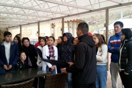 Затем студенты посетили комплекс отдыха «Таверна 12 каминов», где имеются ресторан на 100 посадочных мест, летняя терраса, отдельные летние кабины, ВИП-зал, комфортабельные коттеджи со всеми удобствами, юрта с национальными колоритом, топчаны у речки, детская летняя площадка. Менеджер комплекса показал и рассказал об истории и развитии таверны.