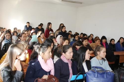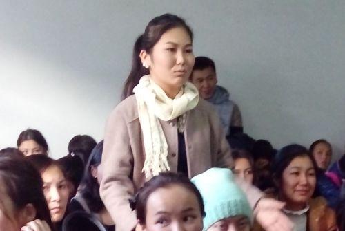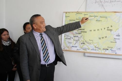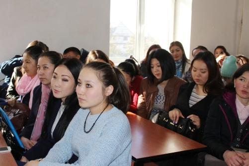 Студенты и ППС факультета внимательно слушали докладчика. Он рассказывал о том, как жили кыргызы на Енисее, как образовался Великий кыргызский каганат, годы процветания и его распад, а также о том, как кыргызы перекочевали на нынешнюю территорию.