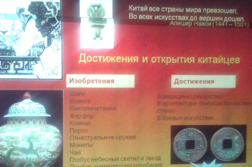 На мероприятии, организованном доцентом Б.Кенешбековой, студенты представили слайд-презентации, доклад-сообщения, видео-ролики по культуре Китая: виды искусства, религии, вклад китайцев в древнейшие цивилизации мира, открытия и изобретения, национальные праздники, национальная кухня, традиции и обычаи народа, а так же достопримечательности Китая.