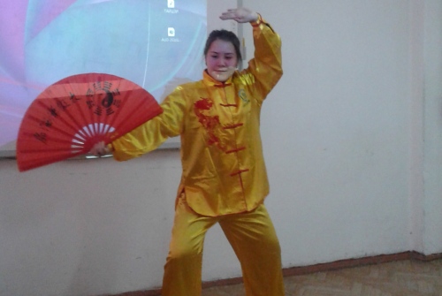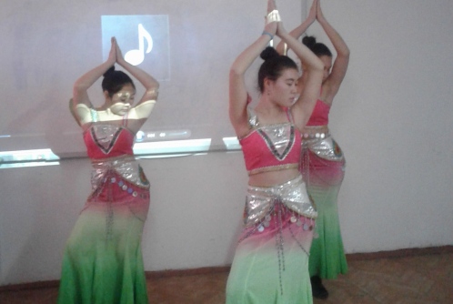 Студентка А.Кадырбекова исполнила народную песню, а Н.Касымова, Д.Качкынова и Э.Кумарова станцевали китайский народный танец.