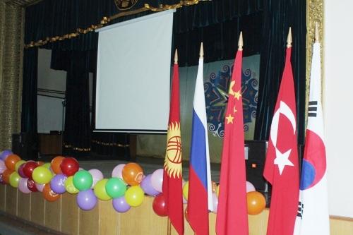 В роли модератора праздничного мероприятия выступил Бакыт Келдибеков - начальник отдела международных связей КНУ.