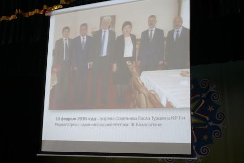 20 декабря 2016 года в большом актовом зале главного корпуса состоялась предновогодняя встреча ректора КНУ, профессора Чинары Адамкуловой с местными и зарубежными партнерами Национального университета. На мероприятии были подведены итоги сотрудничества КНУ с партнерами за 2016 год и были вручены им Почетные грамоты и Благодарственные письма КНУ.