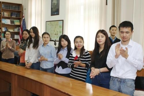 На вручении приняли участие 3-й секретарь посольства Японии в КР г-жа Накагава Юри, а также преподаватели японского языка и студенты факультета.