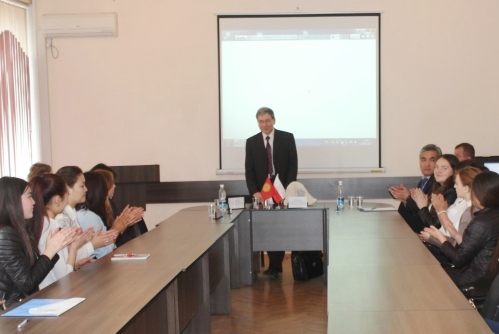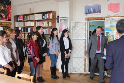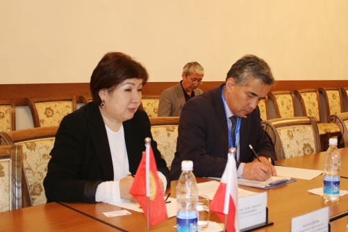 Затем члены польской делегации встретились с деканом факультета русской и славянской филологии_Сардарбек кызы Нурайым. В кабинете польского языка ФРиСФ директор Института России и Восточной Европы Ягеллонского университета г-н Иоахим Дец прочитал лекцию для студентов на тему:_«Особенности польского характера. Различия между польским менталитетом и опытом постсоветского пространства». Он также_ответил на вопросы присутствующих об учебе в Польше.